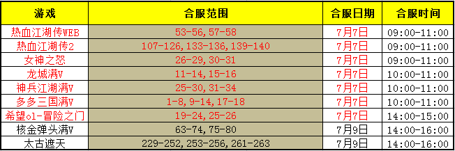 平台BT游戏7月份合区公告